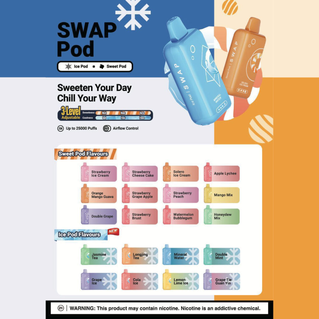 Introducing the ELFBAR Swap 25000 Puffs, a revolutionary disposable vaping device designed to deliver an unparalleled vaping experience. With an impressive array of flavors and a massive puff count, this kit is perfect for those seeking convenience, variety, and long-lasting performance.