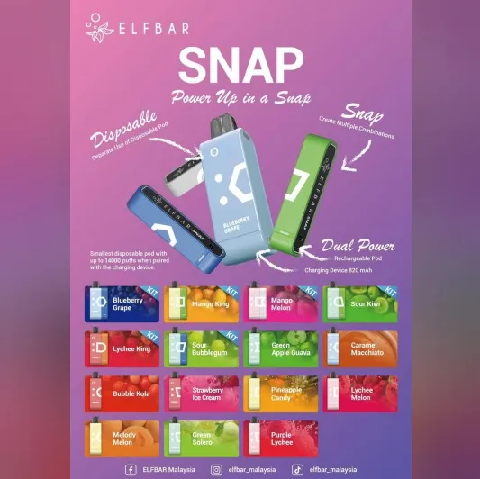 The Elf Bar Snap System brings a fresh take on disposables: use the pod alone, or pair it with the battery pack for long-term use. With its magnetic snap pods, mesh coil tech, USB‑C charging, and up to 14K puffs, it’s a convenient and reliable option for those who want easy flavor switching without tossing electronics.